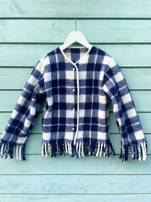 Jakke af ternet tæppe str. 116-122