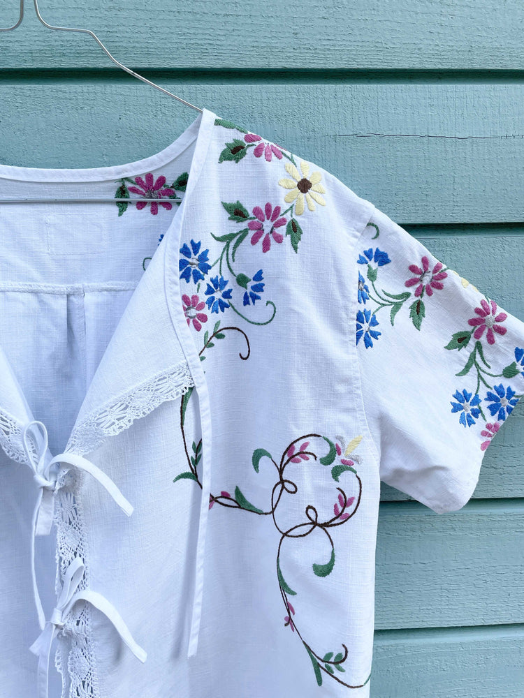 Bluse - Hvid med korsstingsbroderi