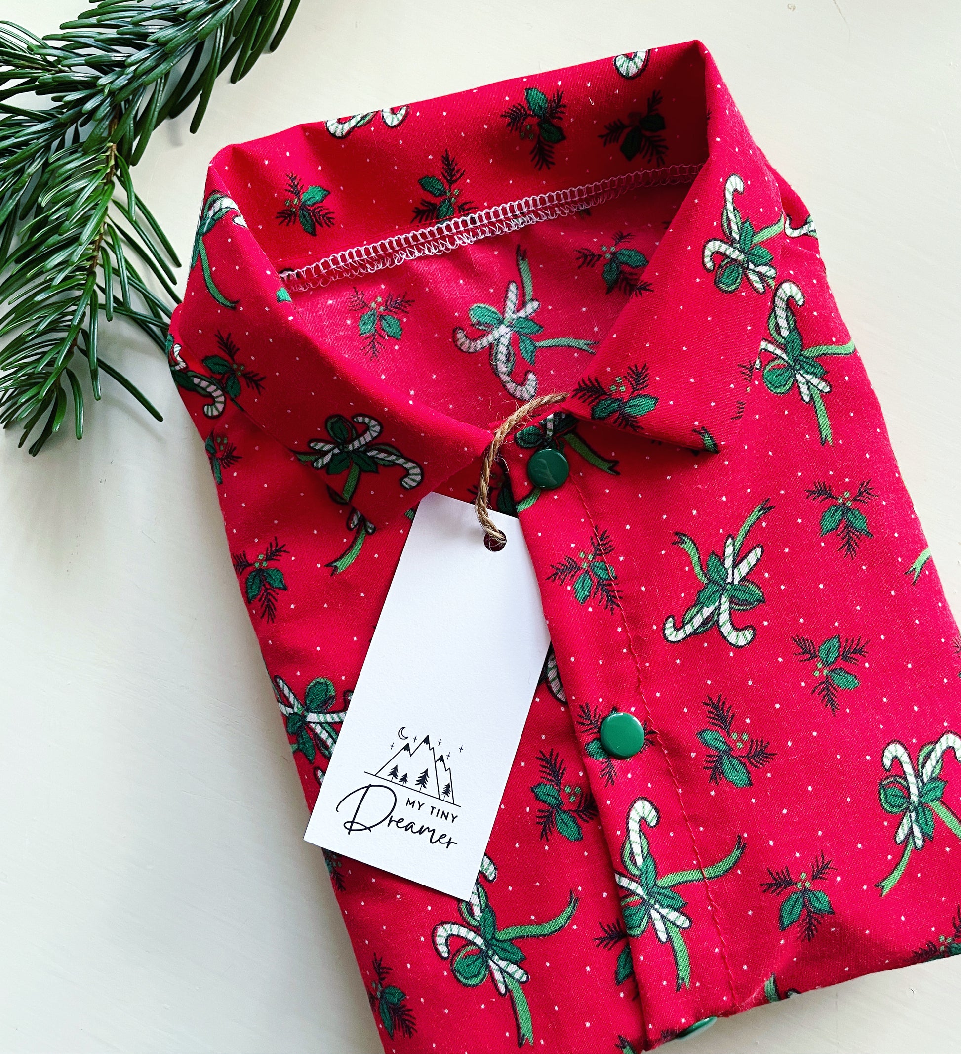 Fineste Juleskjorte syet af juledug i let bomuldsstof, perfekt til juleaften og julens andre magiske fester.