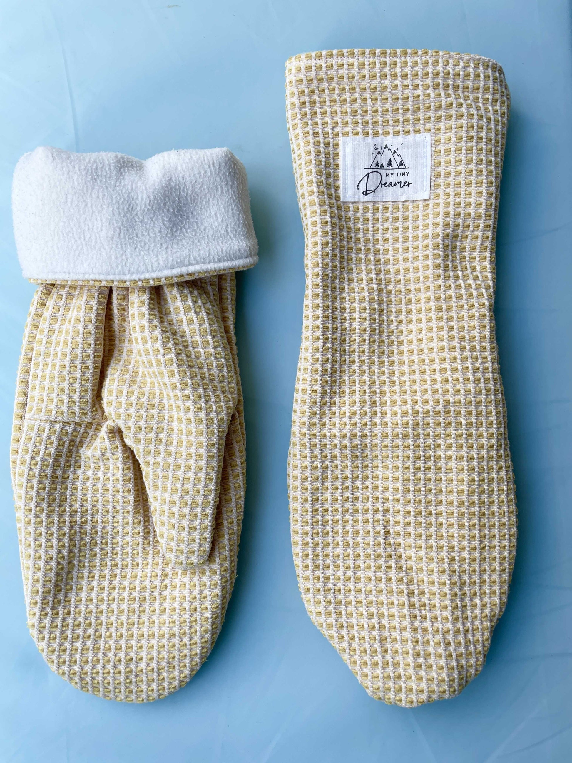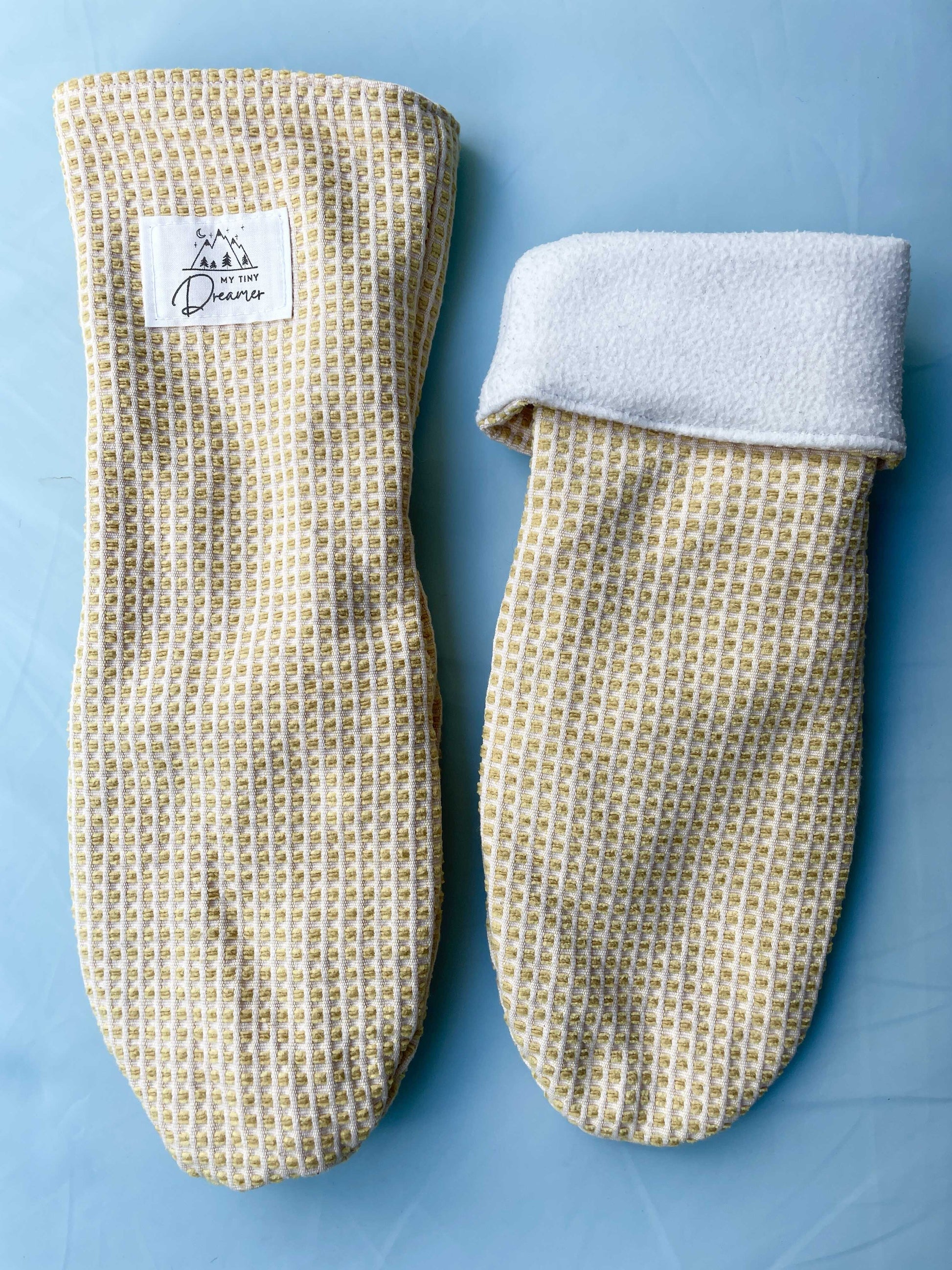 Lufferne er lange, så du kan holde varmen, og de kan også foldes ned, så fleeceforet danner en fin kant.