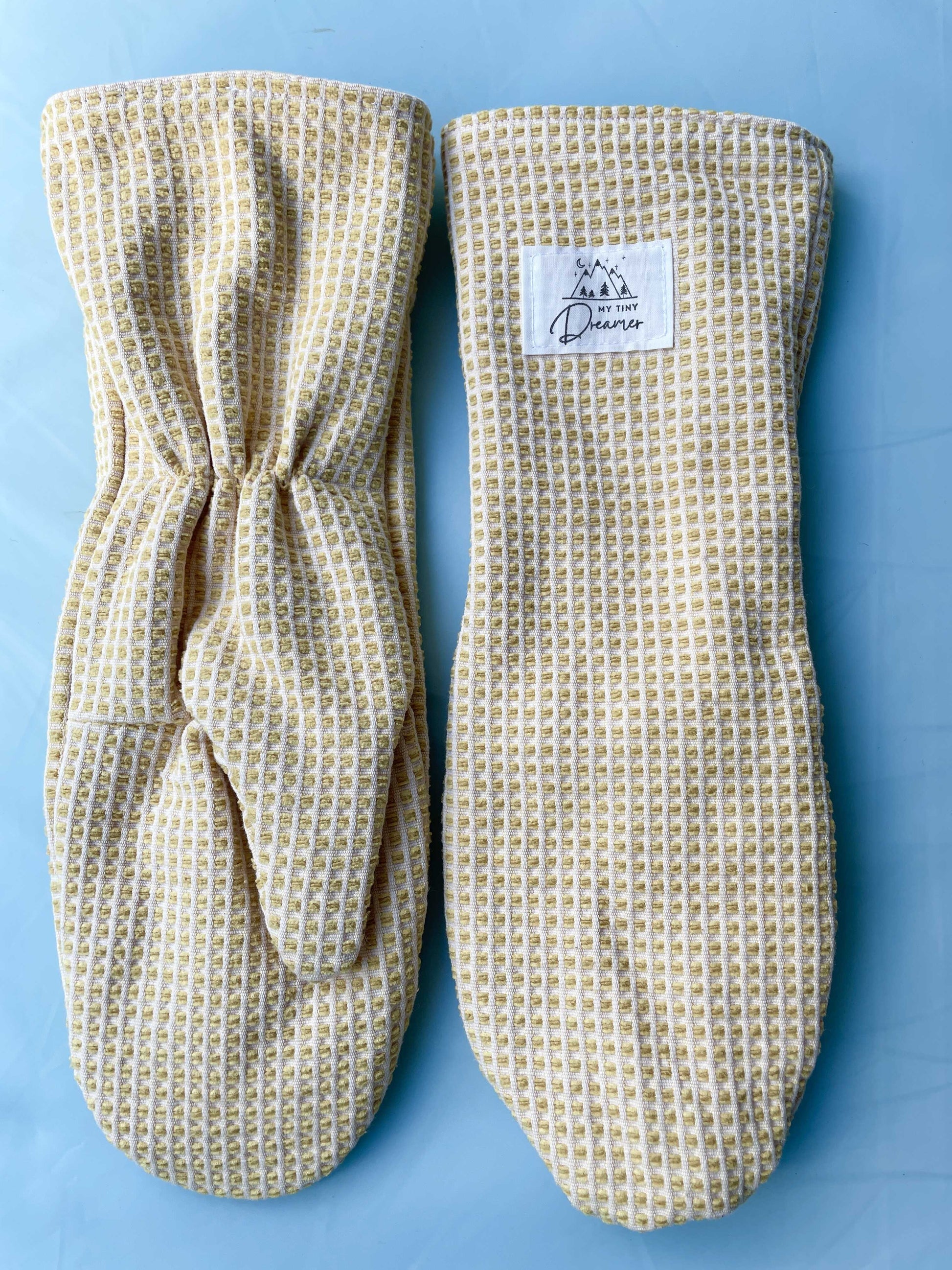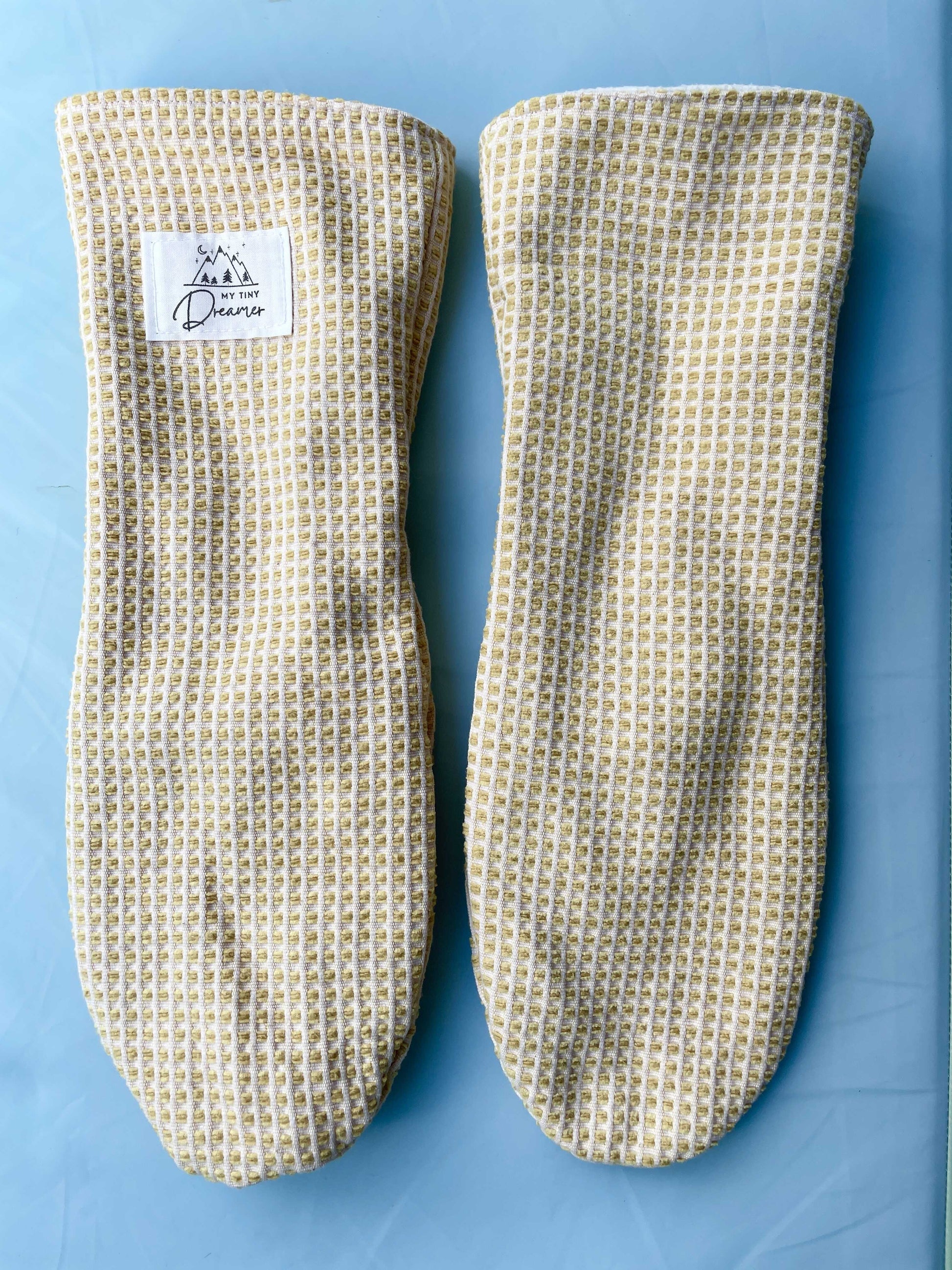 Lufferne er foret med blødt fleece, der også er upcyclet.