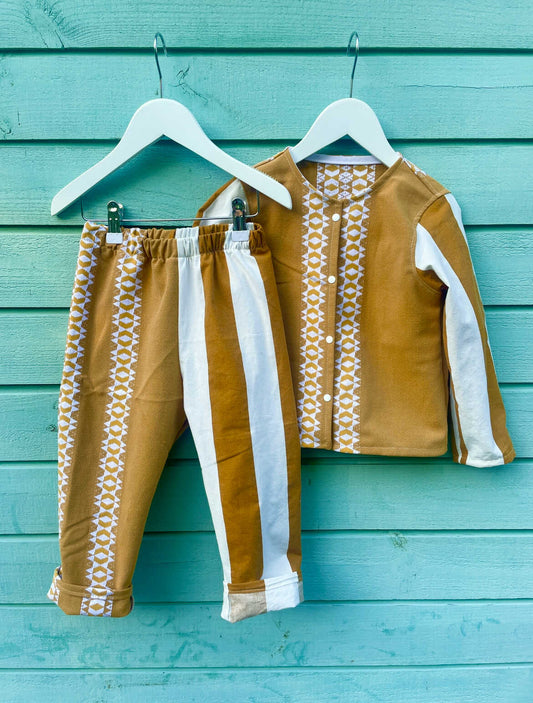 Men børn leger og bliver beskidte (og det kan jo også ske for de voksne), og da retrotekstilerne har tidligere liv som sengetøj og duge, kan det også sagtens tåle at blive vasket ved 60 grader. Derfor anbefaler jeg også, at tøjet ikke kun bliver brugt ved særlige lejligheder, men får lov at komme med i vuggestue, børnehave og skole. Det er tøj, der er lavet til at lege i og til at blive brugt.